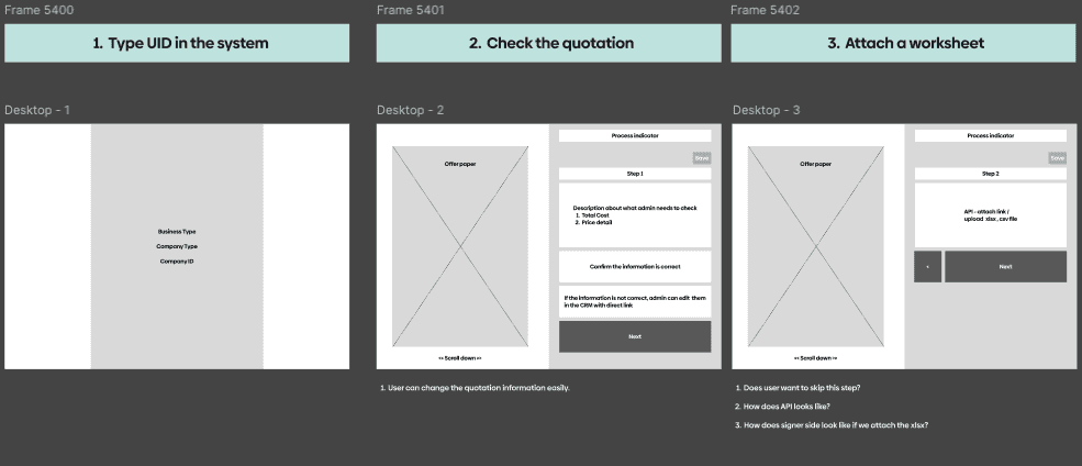 I created wireframes to structure the workflow and make the process easier to follow. Instead of asking users to figure out what to do, I designed a clear step-by-step flow. Instead of making users think, I designed the system to guide them.