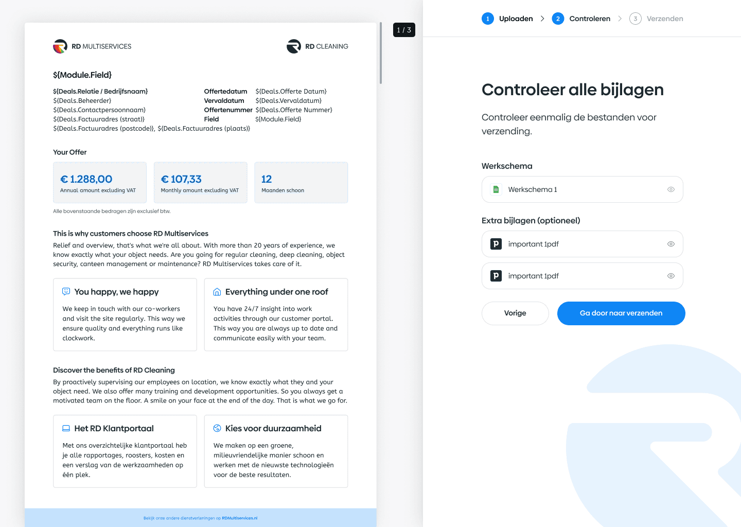 RD Multiservices is a facility services start-up based in Barendrecht. I joined the team as a product designer, where my main focus was rebranding their marketing websites and designing an internal desktop application. My goal was to improve usability and accelerate business processes through user-centered design.