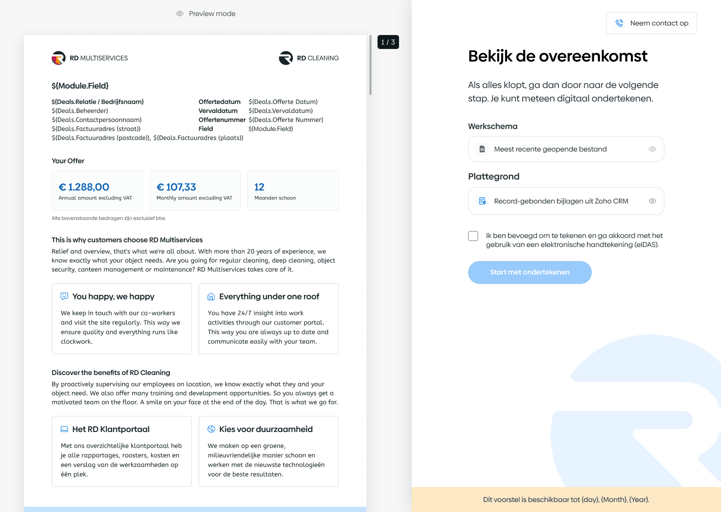 While the system enabled automated contract generation through CRM integration, my role focused on designing how this automation is structured, displayed, and used in practice.