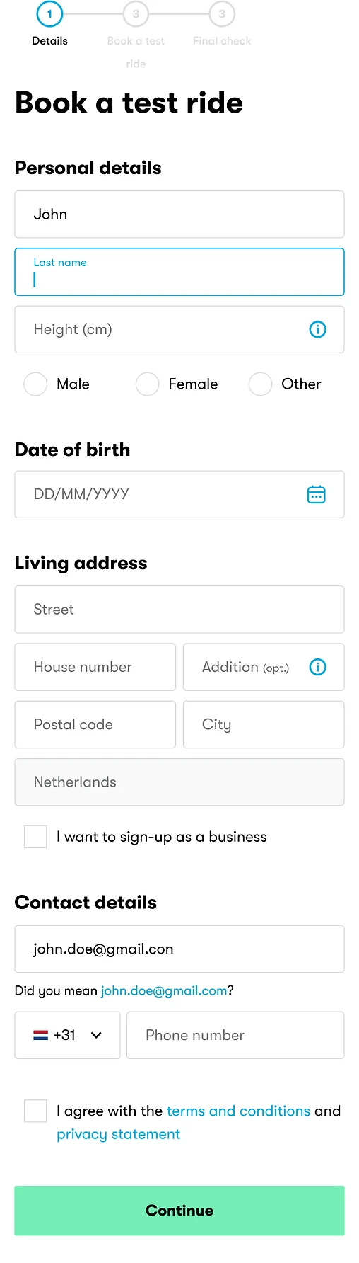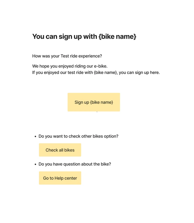 Currently, we don't provide any follow-up emails to users, which means we miss the opportunity to encourage sign-ups after test rides. Additionally, we can create a smoother sign-up journey following the test ride experience.