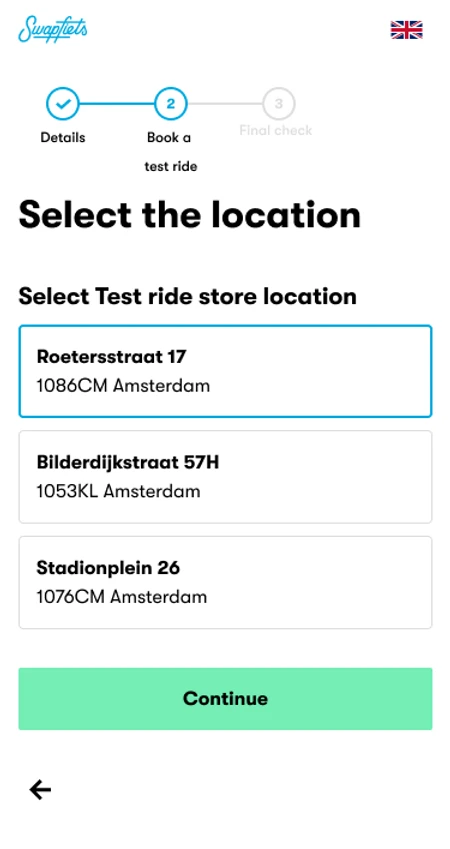 User : Make the test ride process easy and enjoyable for users so they are happier and more likely to sign up with Swapfiets.